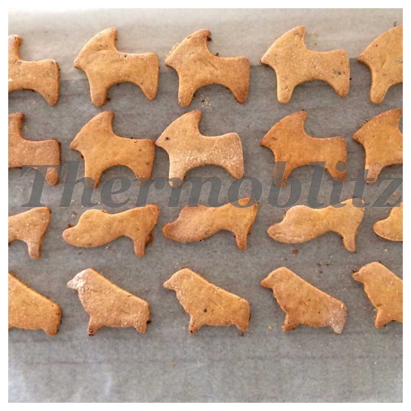 This recipe makes 50 fabulous biscuits. All Dog Biscuit are tested first on our family. !!! These are great – but I don’t recommend feeding them to your family ! Keep them for your pooch and make some of my biscuits for ‘humans’ HERE