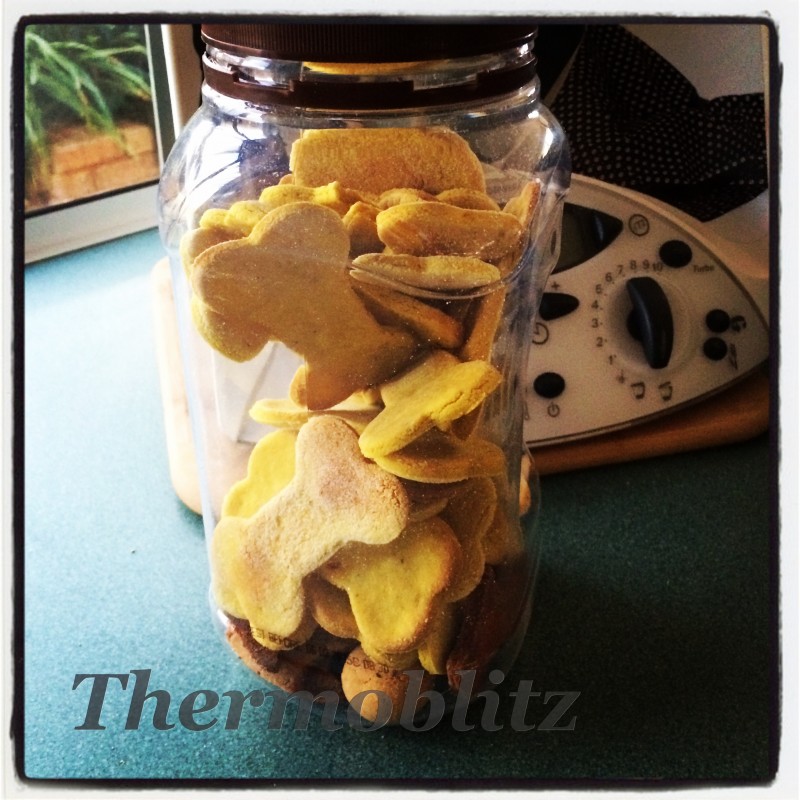 As I have a small dog I only used half of the qty it made 22 large Bone shaped biscuits and froze the rest. That way I have a fresh batch.