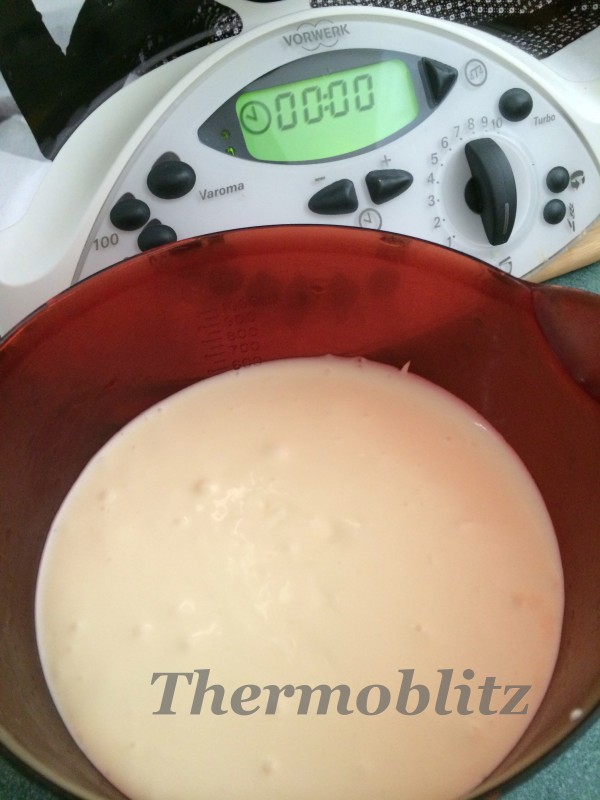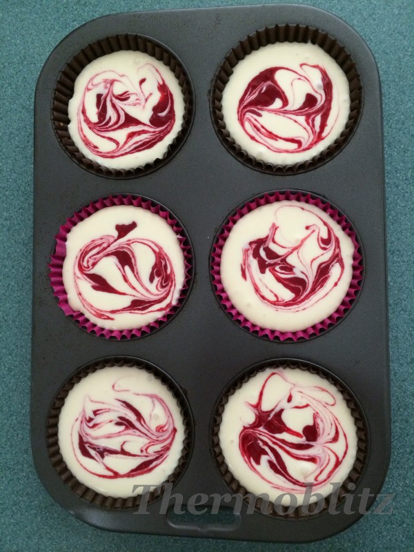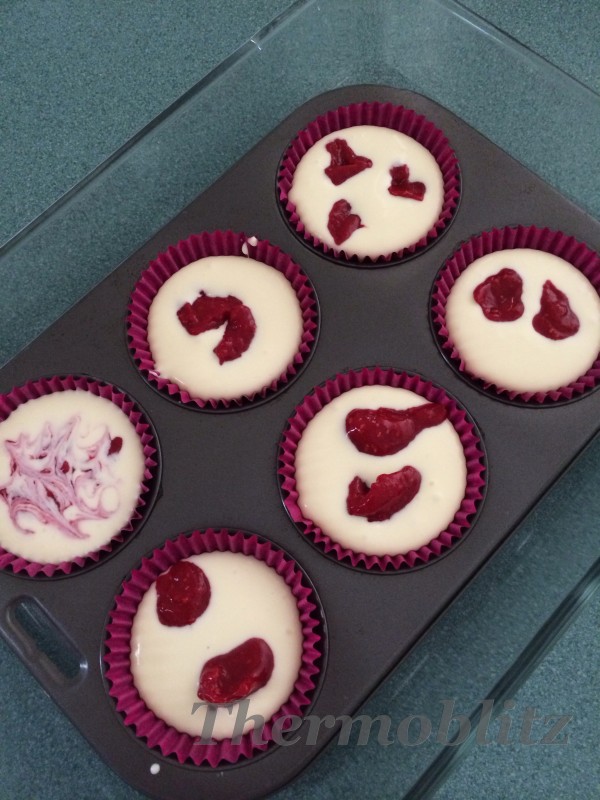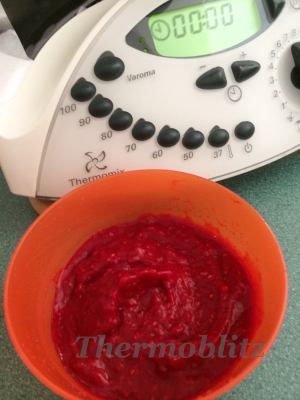 Set aside the Cream Cheese mix and ix up 100 g Raspberries and 10 g – 20g of Raw Sugar (depending on your taste – I only used 10) Mix until smooth about a minute on speed 7 stopping to scrape the bowl.