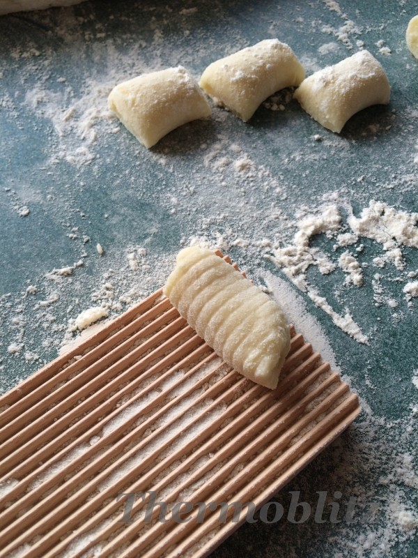 Divide small roll into little sections and then press down on the Gnocchi Board ( or Use the back of a fork) This is so the sauce will sit in the grooves – making the Gnocchi even yummier.