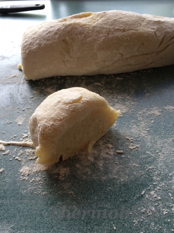 Roll into shape a large roll and then divide off sections to work with in making the Gnocchi