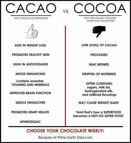 30g Cacao (not cocoa you really need to use cacao to get the rich result PLUS the health benefits of Cacao – I’ve included a photo of the differences between Cacao and Cocoa)