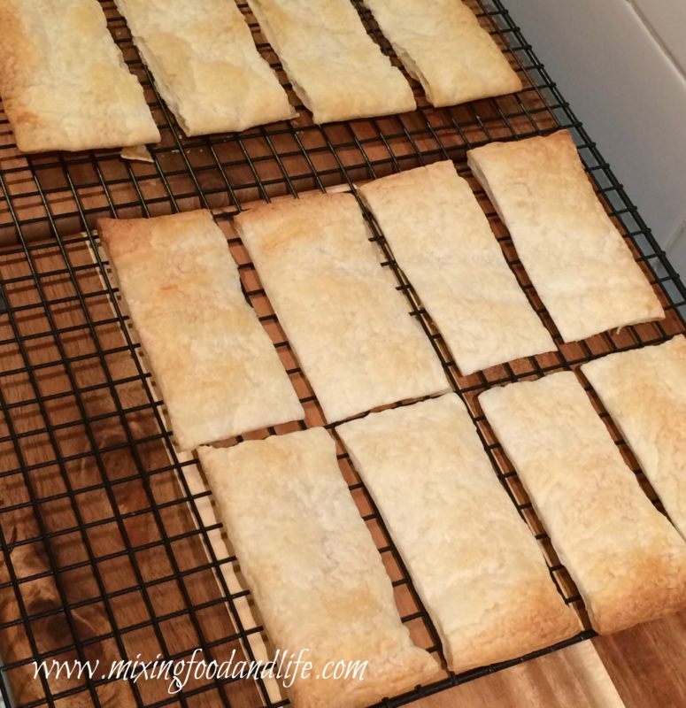 To make the matchsticks you will need 2 sheets of puff pastry . Defrost to still a little firm and then cut each sheet of puff pastry into quarters and then cut each quarter in half