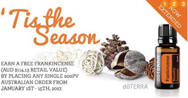 Don’t forget because of the holiday season doTERRA have generously extended their FREE Frankincense offer until the 15th January ! Spend 200PV and receive a FREE Frankincense value $114.13 !! –