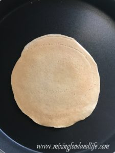 Make sure your pan is Hot. There was absolutely no need to oil or grease the pan. I used just under a 1/4 of a cup of mix per pancake